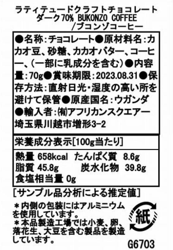 ダーク70% ブコンゾ コーヒー クラフトチョコレート